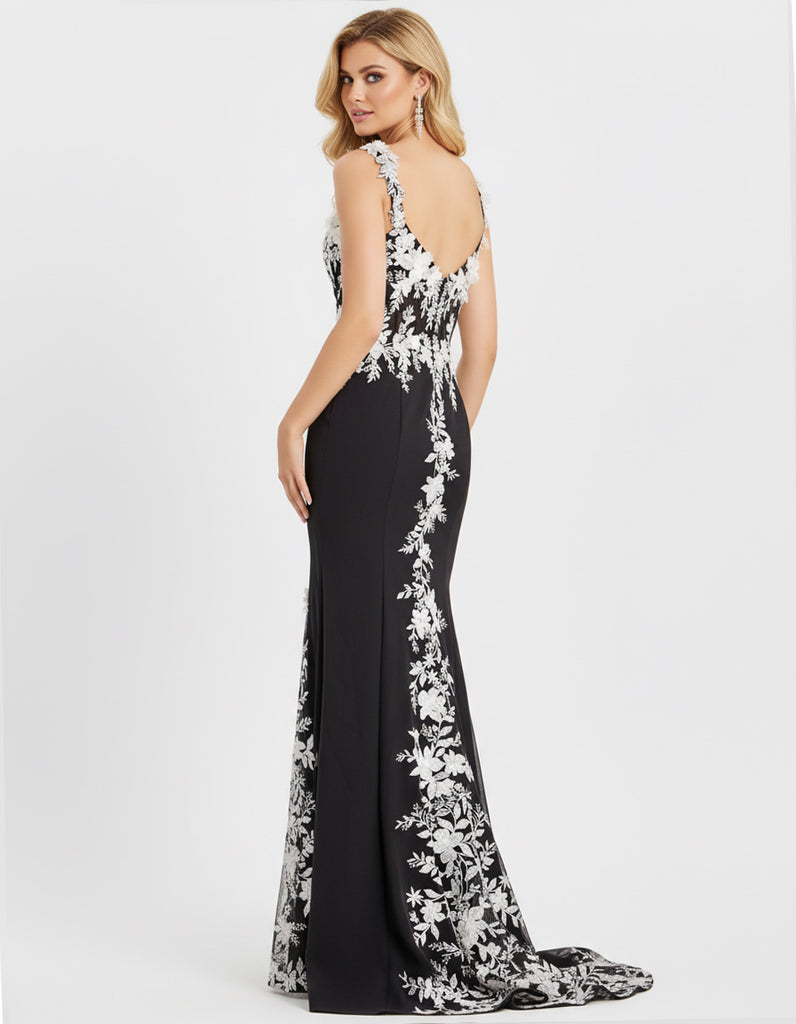Black Sequin Gown with Gold Leaf Pattern 48610