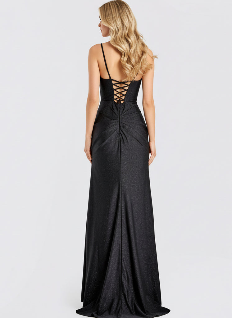 Strappy Metallic Fitted Gown with Side Slit 49162
