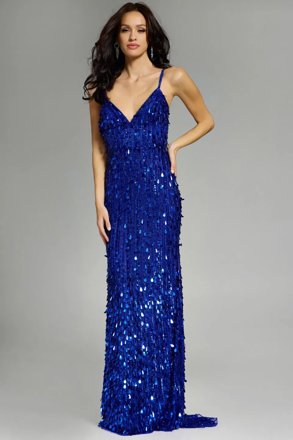 Sequined Gown with Plunging V-Neck and Crisscross Back 45262