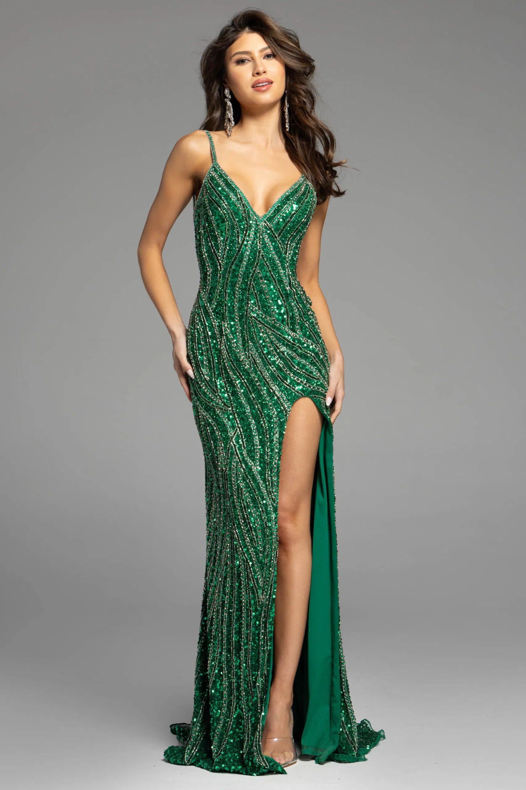Sparkling Gown with High Slit and Deep V-Back 42176