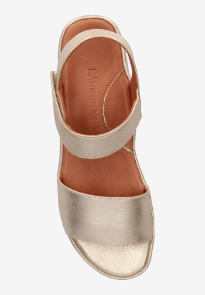 This suede leather sandal has a memory foam insole, leather lining and synthetic outsole. This shoe has a hook and loop closure on a 1.5 inch heel.