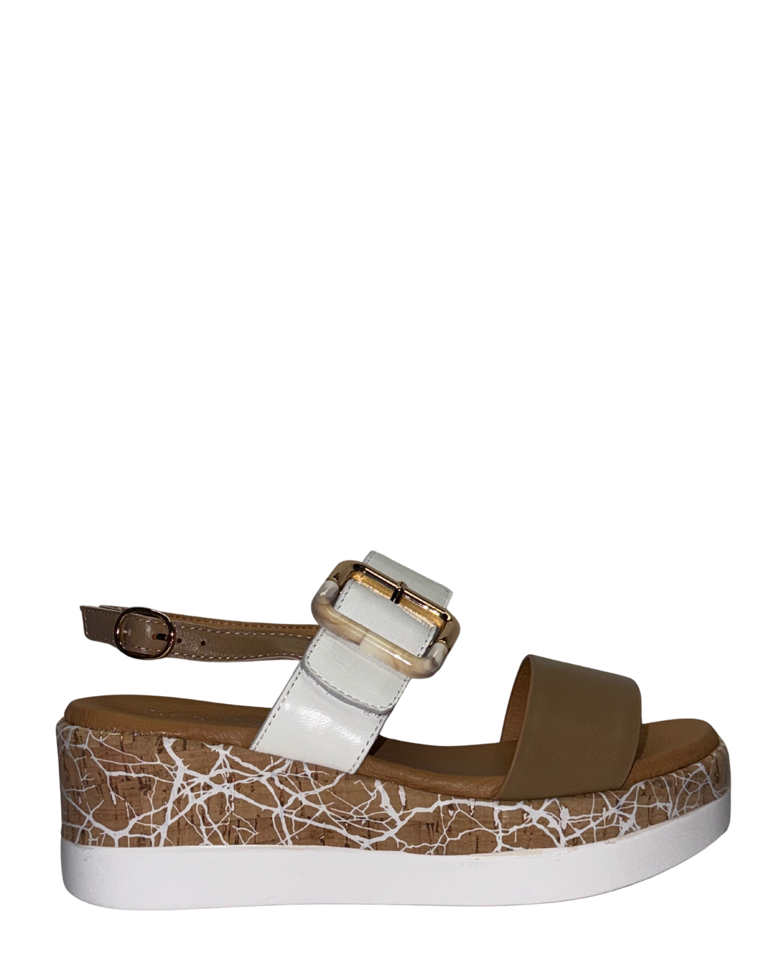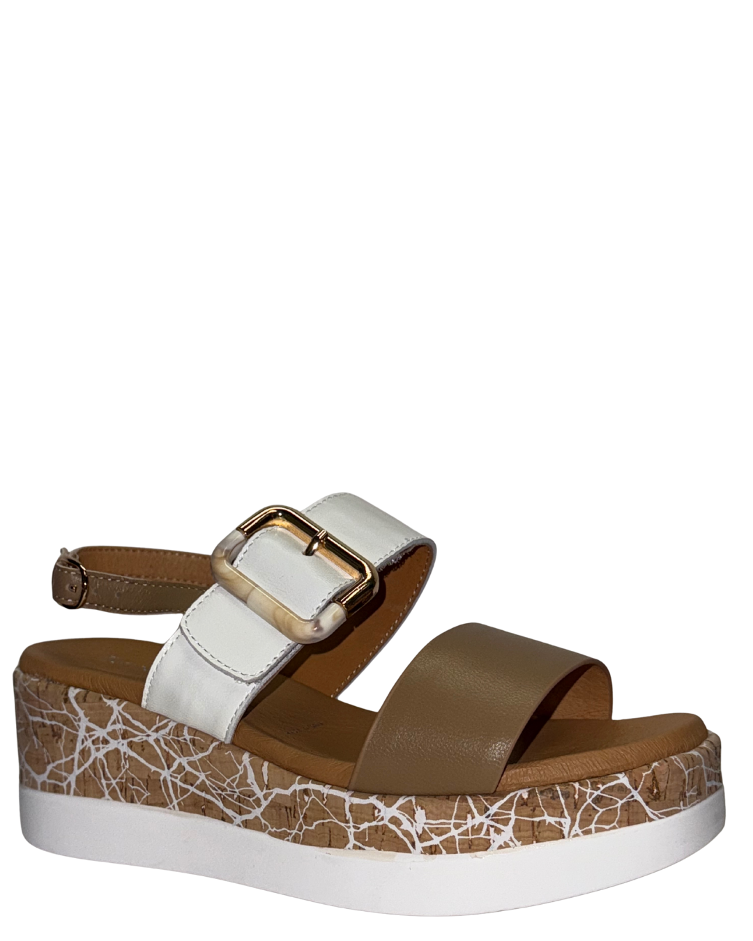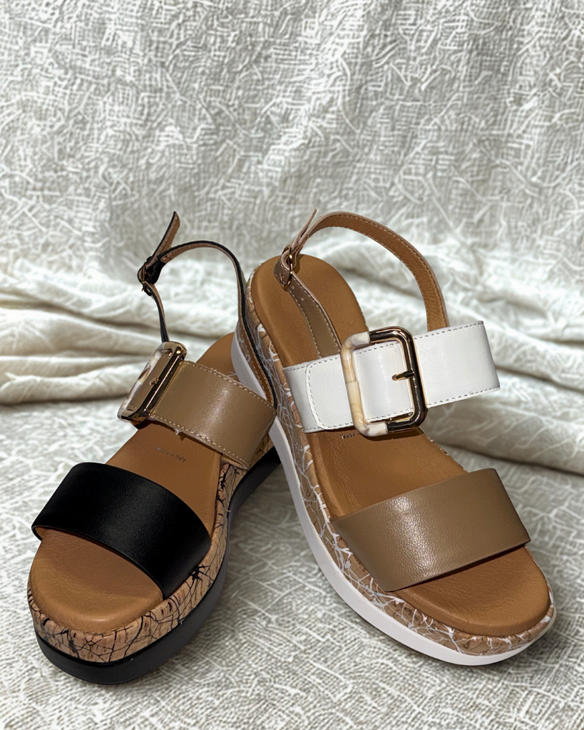 Buttery Nappa with Painted Cork Wedge Two Adjustable Buckles 5mm Gel Foam Padding