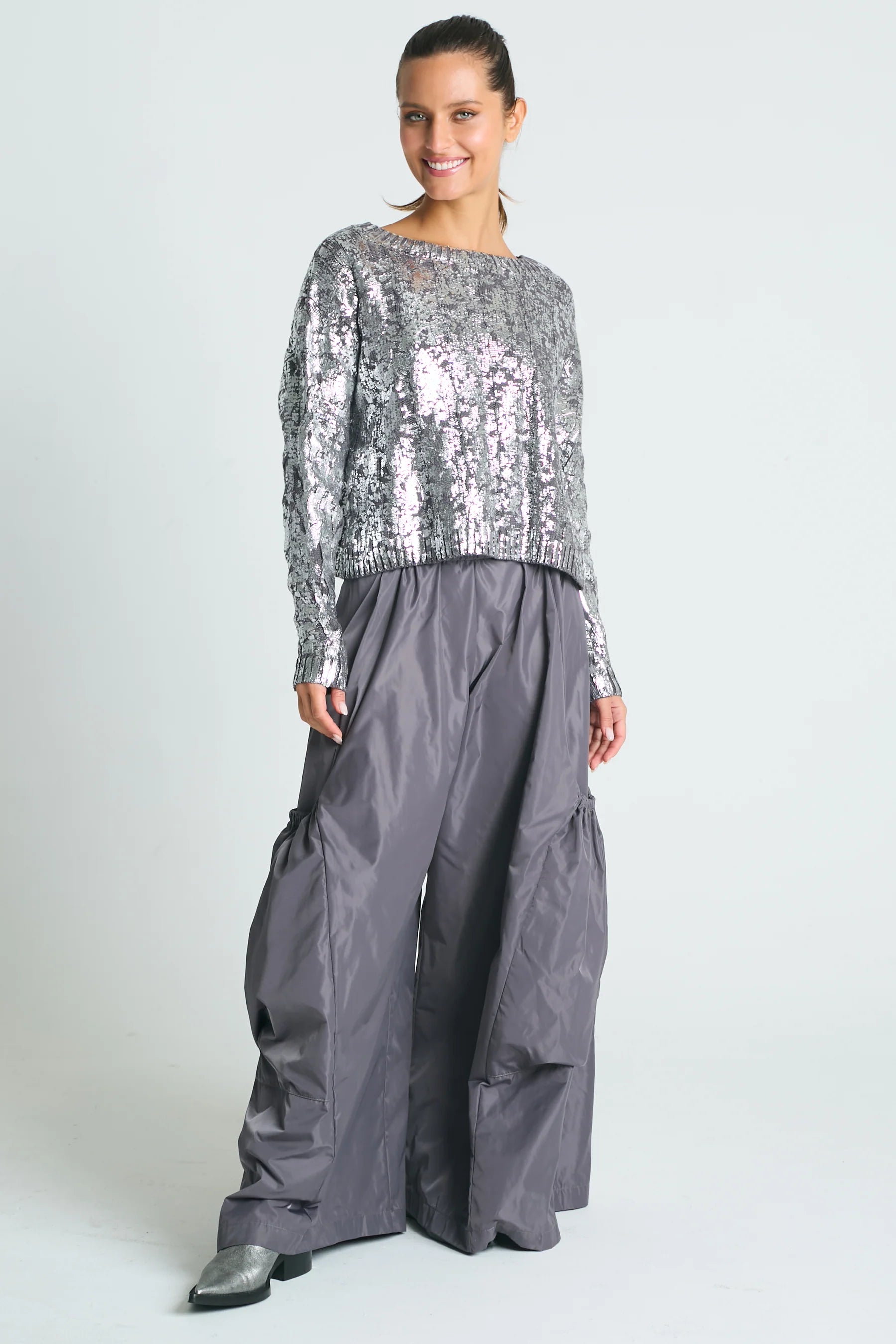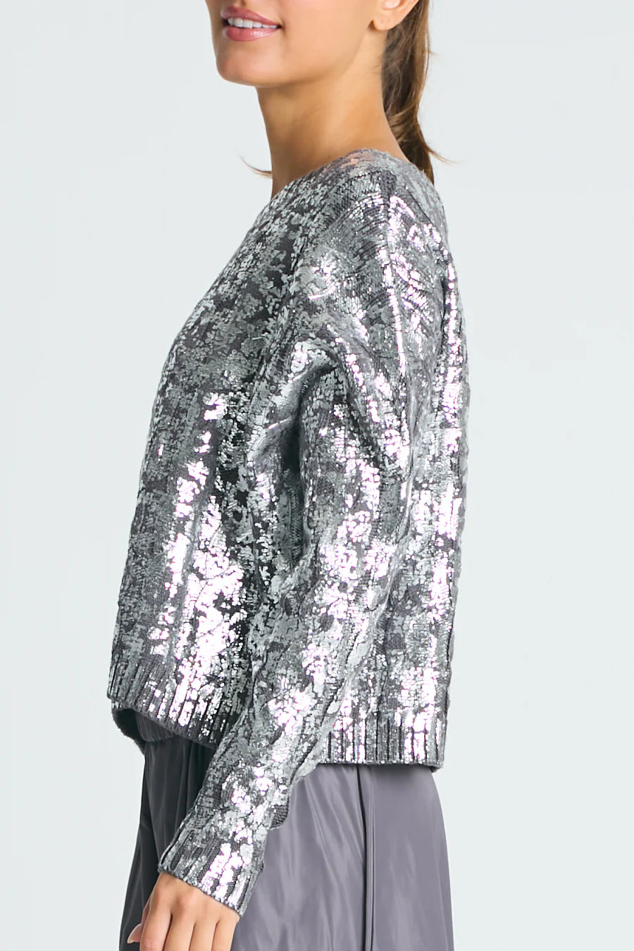 Shine through the season with our Holiday Metallic Crochet Crewneck Sweater, a festive twist on a classic favorite. This luxe cable-knit sweater is crafted from ultra-soft Pima cotton and finished with a subtle metallic foil shimmer—adding just the right amount of sparkle for holiday parties, winter gatherings, and cozy celebrations at home. The lightweight feel, breathable knit, and cropped boxy silhouette make it an effortlessly chic layer that elevates any outfit. It’s the perfect holiday sweater for adding shine to your everyday looks or creating a standout moment on special nights.
