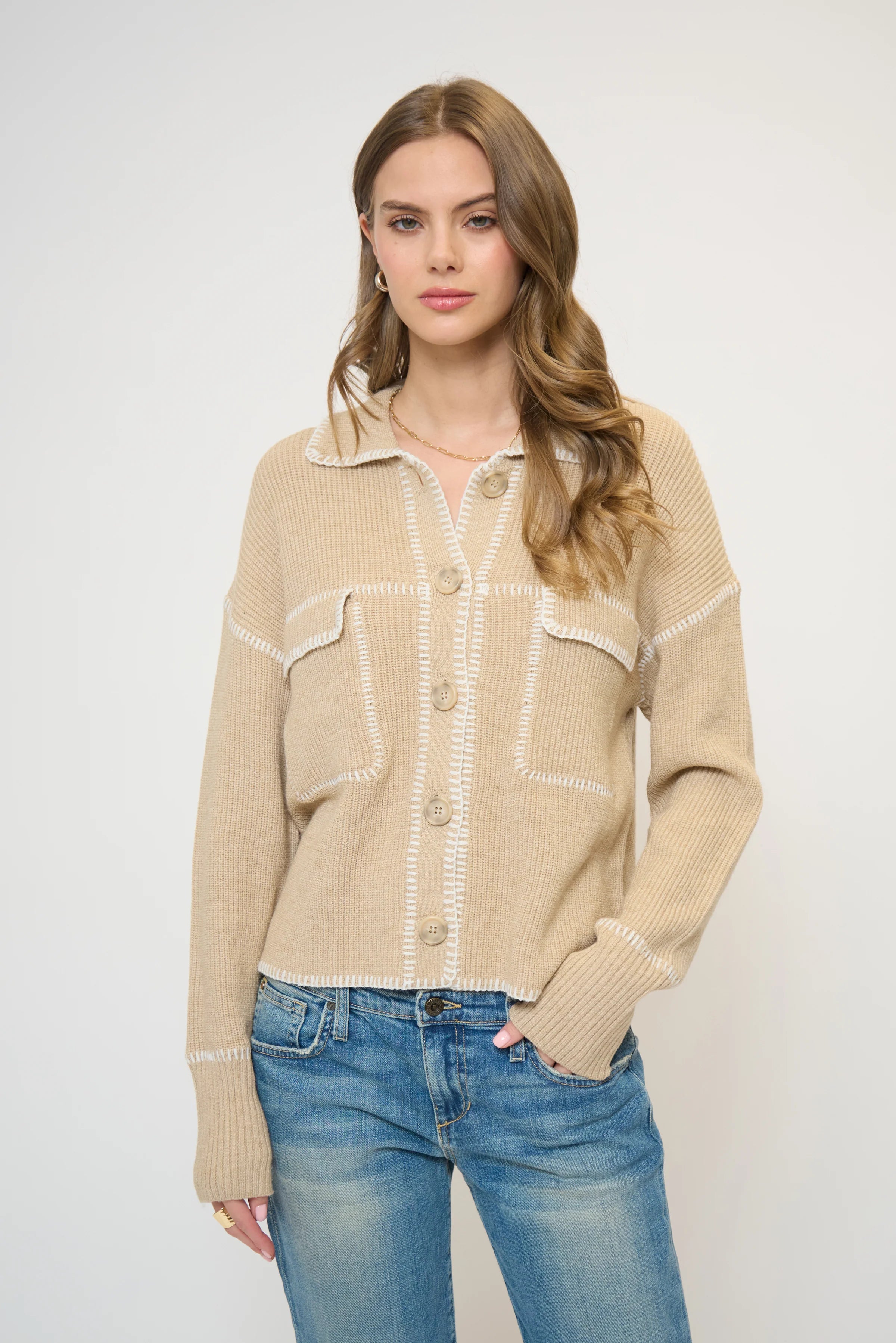 MAISIE TOPSTITCH SWEATER JACKET - Oat -