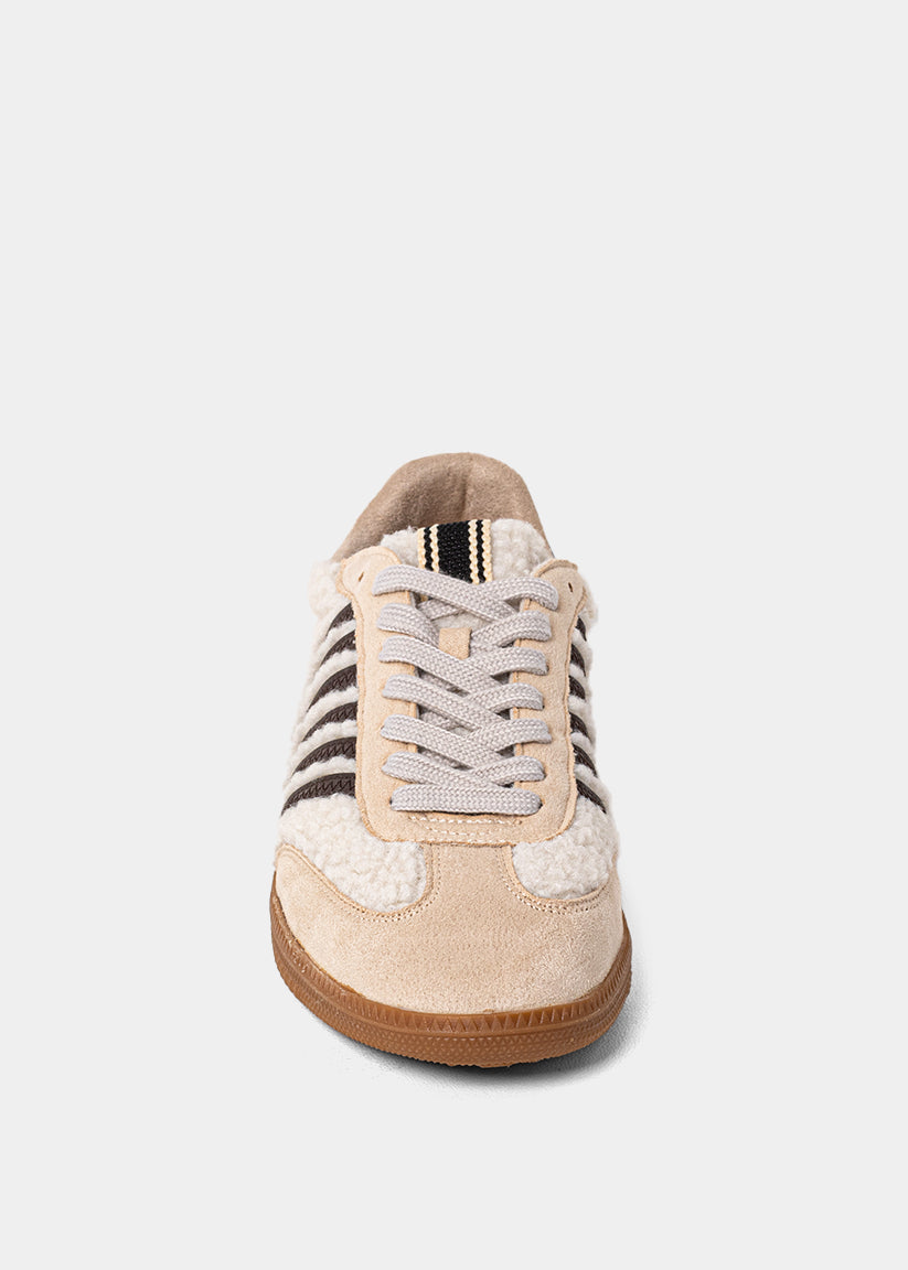Step up your game with STEVIE in Beige Suede! This retro-inspired sneaker redefines cool, featuring crisp white stripes and a matching heel accent. Crafted with luxe suede body and faux leather accents and finished with a gum sole, it's the perfect mix of style and comfort. Ready to own the spotlight?